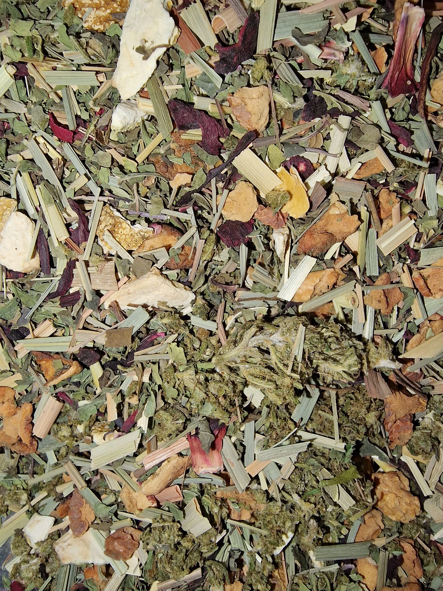 Pomme*, citronnelle*, menthe*, hibiscus*, écorces d'orange*, Stevia*. *Issu de l‘agriculture biologique